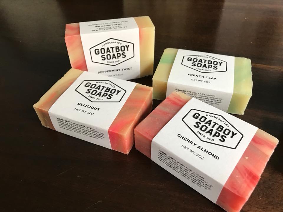 Goatboy Soaps are handcrafted In New Milford, Connecticut and made in small batches using natural ingredients, goat’s milk, saponified oils, essential oils or all natural fragrance. You will find their soap a personal experience. Just enough to enjoy in your bath or shower, not overpowering. For those with very sensitive skin, try unscented!!